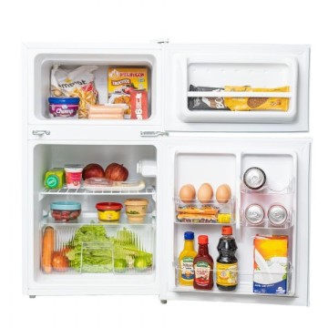 Equipo de refrigeración que comprende compartimientos y un sistema frigorífico, el cual mantiene fresco a los productos almacenados en su interior. Ideal para cualquier espacio ya sea en oficina, dormitorio, etc.